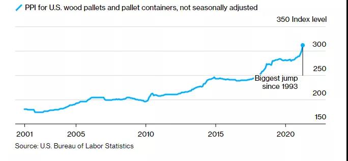 根據(jù)地區(qū)的不同,通常的托盤的價格是9美元到12美元。但是2021年托盤價格可能接近15美元。美國政府公布的數(shù)據(jù)顯示,3月生產(chǎn)者價格指數(shù)(ppi)中木托盤成分跳升幅度為1993年以來大。